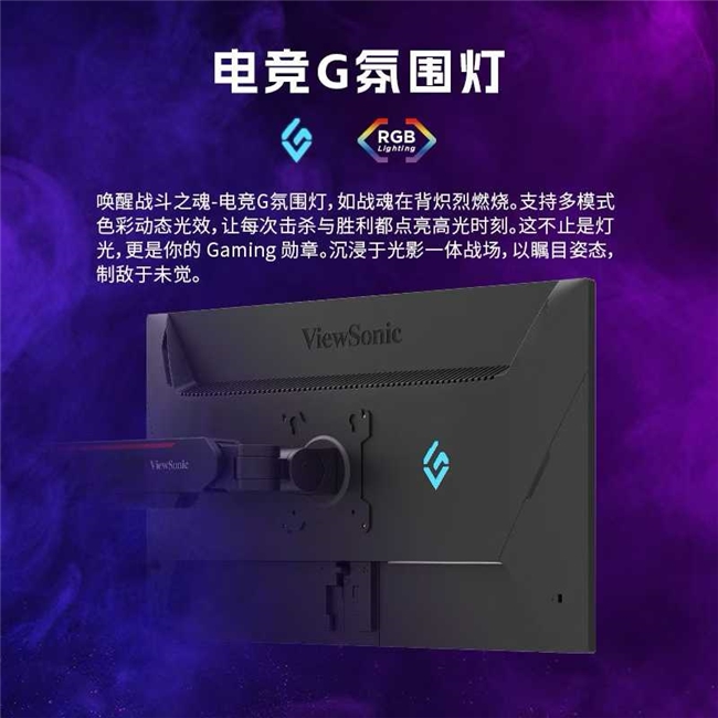 在外观设计上,VX25G26-2K-4采用三边微边框设计,并设有可切换为红、绿、蓝、冰蓝的电竞氛围灯,进一步提升屏幕占比,带来更强的视觉冲击力和沉浸感,同时让多屏拼接更协调。该显示器还支持VESA壁挂,拥有五向OSD摇杆按键和独立电源键设计,简洁利落的同时,让玩家操作更便利。标配2米加长DP信号线,大幅移动显示器仍稳如磐石。从此,设置调整不打断战斗,连接稳定无后顾之忧,助你全程专注决胜战场。