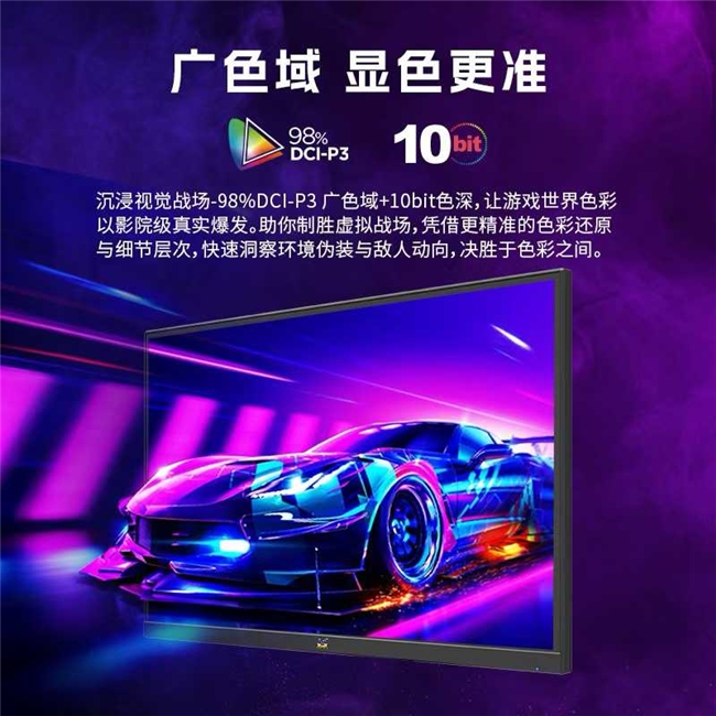 10.7亿色 更多彩更真实 如今的游戏画质细节与颜色越来越丰富,对色彩的真实呈现也是玩家的诉求之一。VX25G26-2K-4提供10.7亿显示色数,并覆盖100% sRGB与98% DCI-P3广色域,以更高的色彩空间与更广的覆盖范围,有效提升画面还原度与层次表现,让游戏世界中的画面真实而生动。